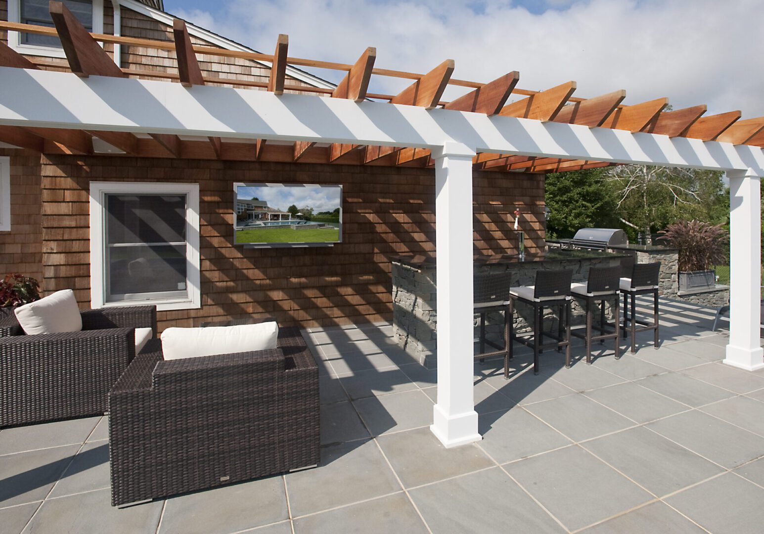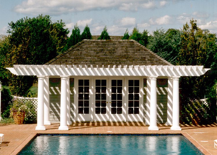 Custom wood accents for luxury pools.